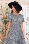 Add a little modest flair to your wardrobe today with the new Alivia! This darling ruffled floral is so dreamy! Features include lovely smocked bodice with short flutter sleeves, elastic waistline and a gorgeous ruffled tiered skirt. Get yours today!