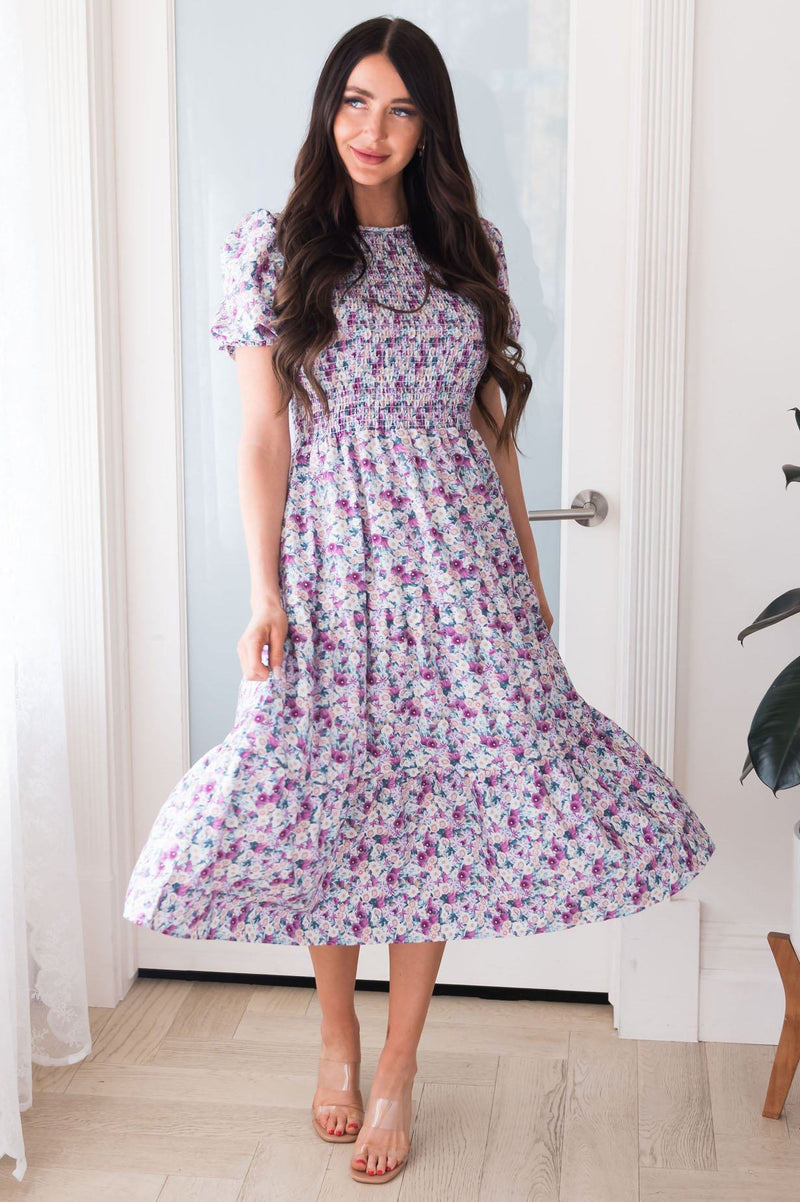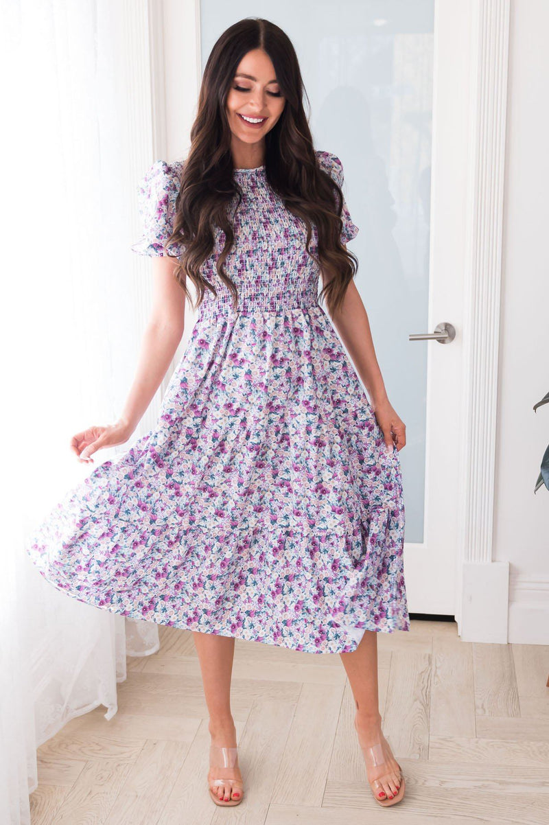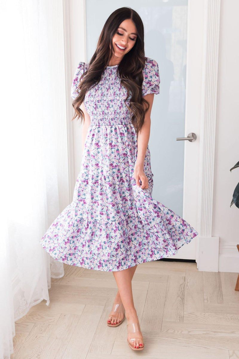 The lovely new Allanah is here to steal the show! This darling dress has the most gorgeous feminine floral print, perfectly paired with a flattering shirred bodice, short puff sleeves and gorgeous flowy tiered skirt. Get yours today!