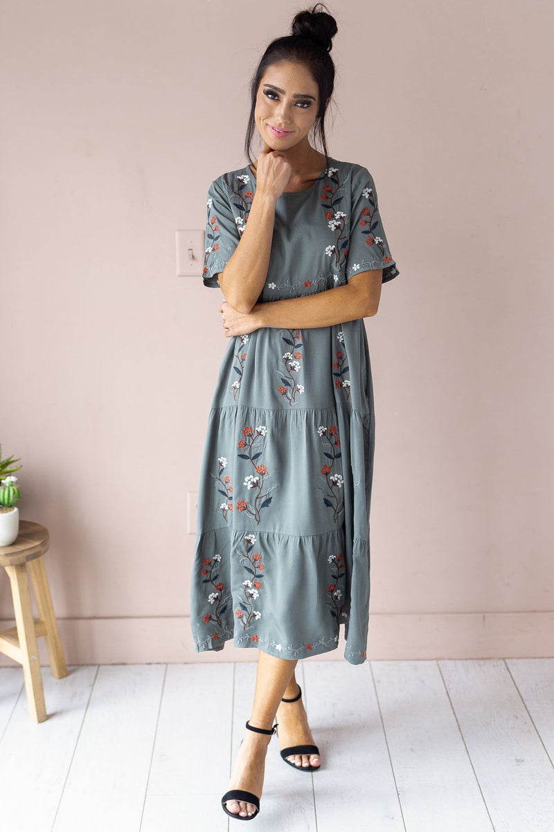 We are loving this new arrival! Seriously, this is a dream dress, especially for the fall and winter months! Empire waistline with the most flattering tiered skirt and let us tell you about the embroidery! Rust, cream, indigo and sage embroidery for the perfect finishing touch! These dresses will be gone in a flash, get yours today!!!
