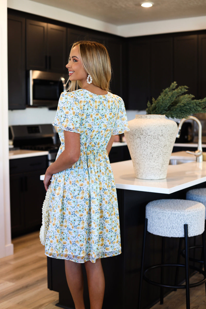 The Alyssa modest dress is perfect from top to bottom! We adore this gorgeous mint magnolia floral, modest squared neckline, short flutter sleeves, easy slip on style and a mid-length skirt! This darling dress is seriously perfect for any season, grab yours today!