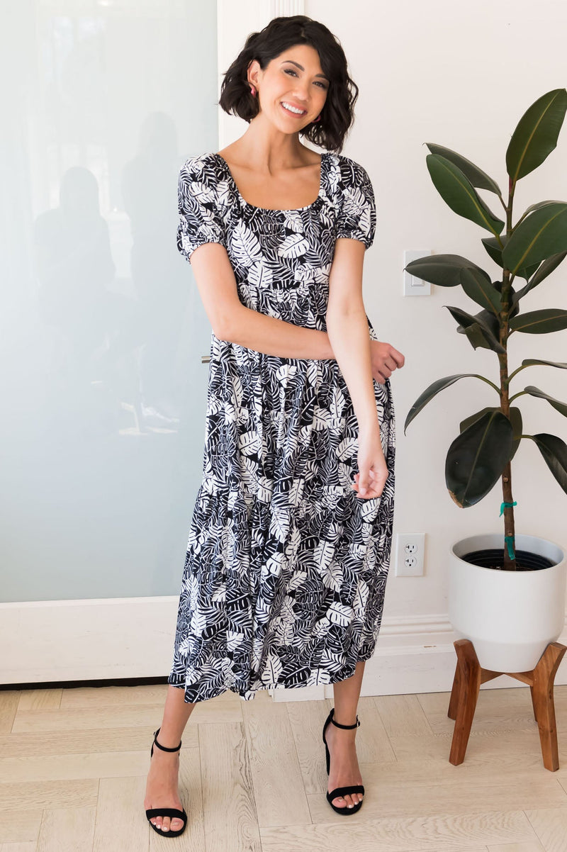 Say hello to the newest classiest dress you will ever own! This modest foliage dress is full of darling features, such as short puff sleeves and lovely ruffle hem! We are head over heels for this one and we know you will be too! Get yours today!
