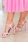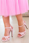 Say hello to your next go-to pair of heels! You are going to fall head over heels for these gorgeous one of a kind beauties. Featuring an ankle strap, cross-over toe straps, 4.5'' heel, gorgeous pink color that will go with anything! These will not last long so hurry and add to cart.