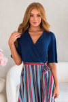 We are giving this new Amber dress all the heart eyes. We love providing nursing friendly dresses that are as cute as can be! This dress features the cross over bodice, cute flutter sleeves, waist belt for that perfect fit! Get yours today.