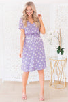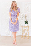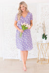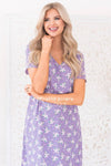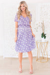 This darling modest Amilia is an absolute stunner! Classy and this season most popular lilac color and floral combination give you such a feminine vibe! Featuring soft v-neck, short sleeves, elastic waist and is fully lined. Get yours today!