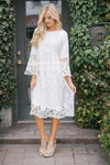 Beyond Stunning! Our Amira Dress has left us speechless! From the detailed lace, to the detailed bell sleeves to the beautiful ivory color, this dress has it all and more. This dress is also fully lined.