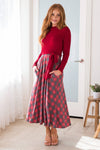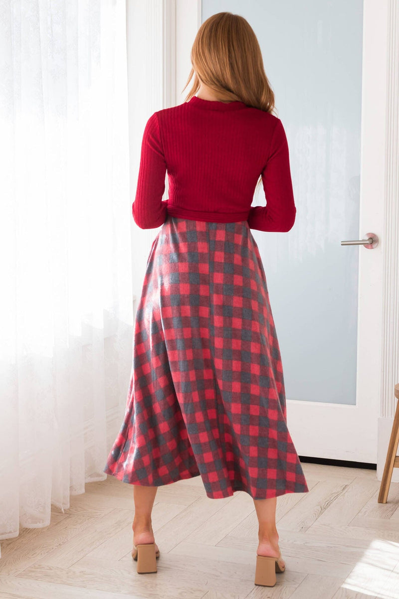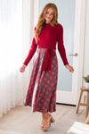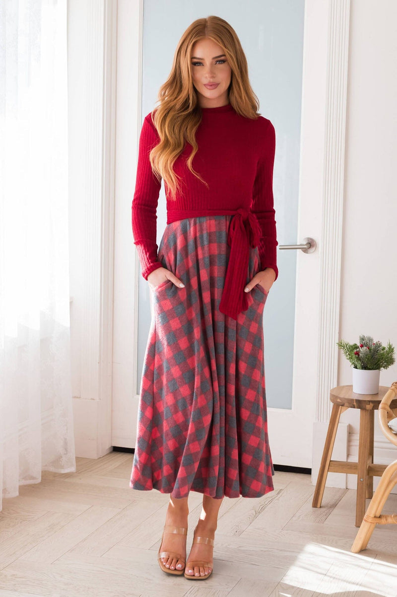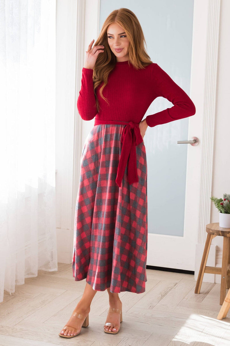 The new Ananda dress will be nothing but darling on you! This simple stunner is a beautiful addition to any wardrobe! We are so in love with the beautiful red bodice, long sleeves, elastic waist with a thick belt tie, and a gorgeous red and grey plaid skirt! Trust us, you won't want to miss out on this one!!