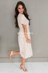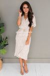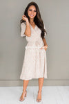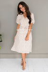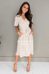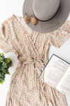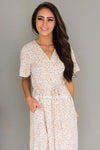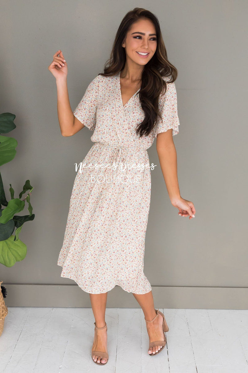 Allow us to introduce you to your New favorite dress! The Angelina, is everything you could want in a dress and more! Featuring lovely flowy half flutter sleeves, cross-over bodice, elastic belt tie waist, pockets and a flowy modest length skirt. Not to mention the delicate feminine floral print, this one is must have for sure!