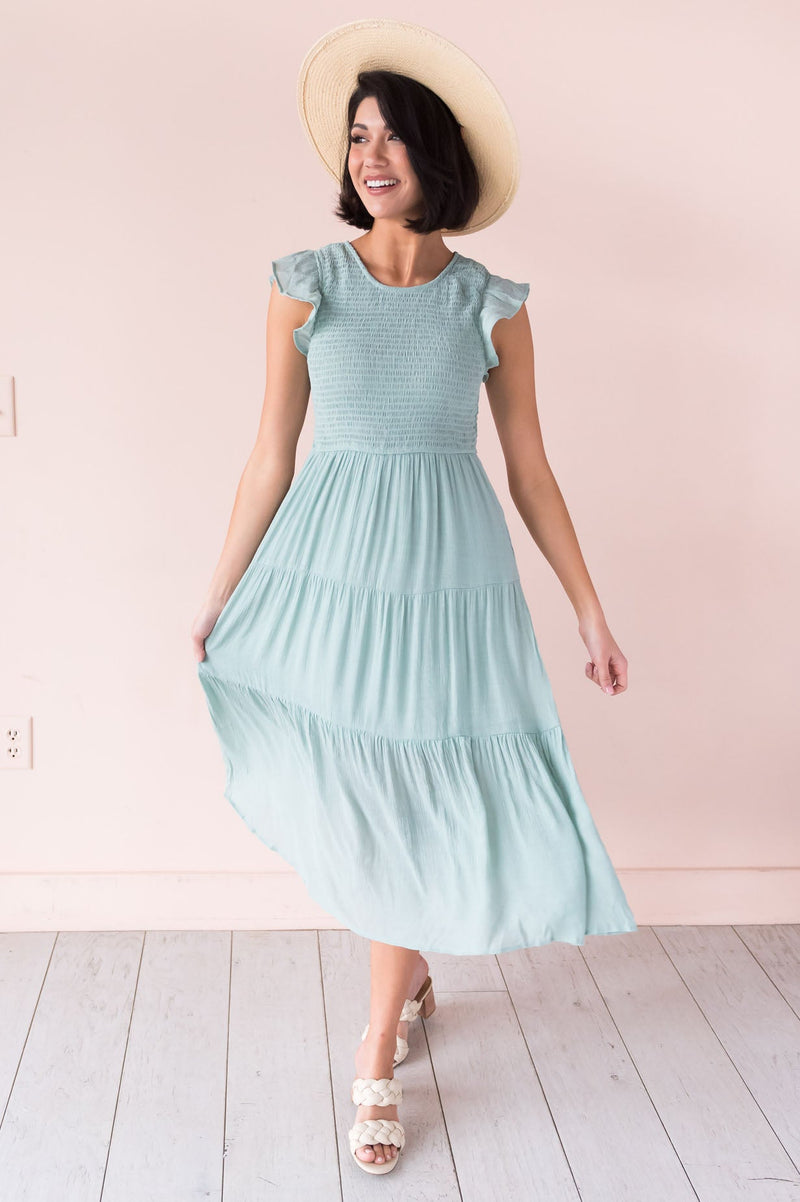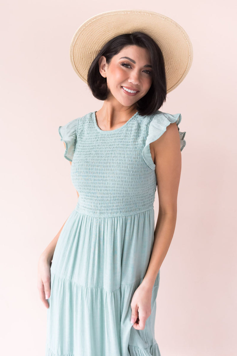 The darling Anna is so classy and feminine, we are truly obsessed! Get yours today before they are gone for good! This dress has all the best features to include a flowy tiered skirt, short flutter sleeves and a fitted bodice.