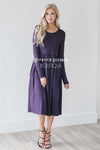 You can never have too many of our soft and comfy dresses! The soft and beautiful dress will take you from season to season! Eggplant dress features long sleeves, round neckline, gathered waist and side seam pockets.