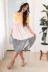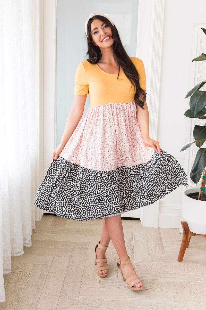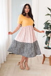 Is there anything more chic than a classic floral block print dress? Not to mention the color combination on this beauty is to die for! Features include short sleeves, elastic waistline and flowy tiered skirt. These won't last long, add to cart now!