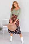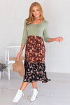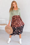 Is there anything more chic than a classic floral block print dress? Not to mention the color combination on this beauty is to die for! Features include 3/4 length sleeves, elastic waistline and flowy tiered skirt. These won't last long, add to cart now!