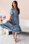 This flowy ruffled must have dress is begging to be a part of your wardrobe! We are obsessed with the lovely color, feminine ruffled details, short flutter sleeves, double banded waistline and the perfect flowy ruffle tiered skirt! Get yours today!