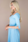 You are going to be in love with the simplicity of this gorgeous dress! There isn't one thing that we don't love about the Annika. This dress features a square neckline and 3/4 length mini bell sleeves. We love a dress with good movement and trust us this one has good movement!