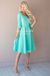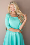 You are going to be in love with the simplicity of this gorgeous dress! There isn't one thing that we don't love about the Annika. This dress features a square neckline and 3/4 length mini bell sleeves. We love a dress with good movement and trust us this one has good movement!