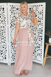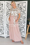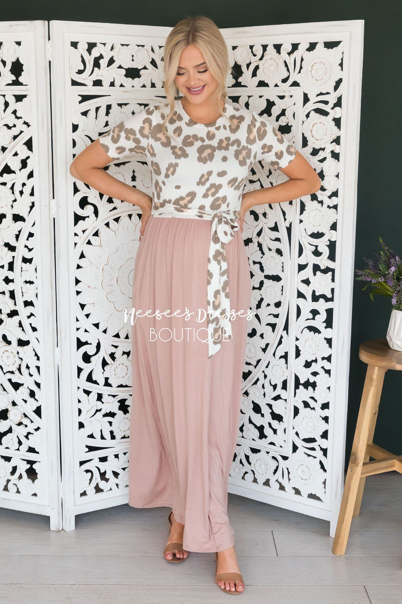 This darling Anny dress has stolen it's way into our hearts! Lovely taupe & blush leopard print fabric creates such a classy piece! Featuring a lovely belt tie detail at the waistline, short fitted sleeves, elastic waist and a full flowy blush skirt. You are going to want this added to your wardrobe, trust us!