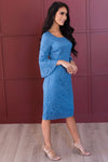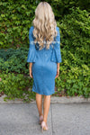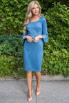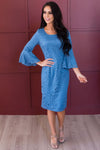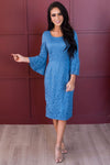 This darling bell sleeve lace beauty is a absolute must have! We are adore the cornflower blue color and pencil fit of the skirt! Get yours today, these beauties won't last long!