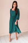 If you have been on search for the perfect chiffon dress for all your upcoming special occasions, look no further! Our new, modest, Ari Dress, is the one for you. Featuring a square neckline, beautiful quarter length puff sleeves, and a flowy tea-length skirt.