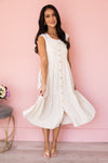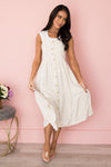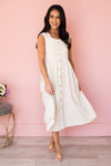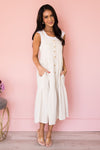 The Arianelle is the most gorgeous overall style dress we have every seen! The lovely neutral color is perfect for all and everything! Along with the darling adjustable shoulder straps, functional button front and tiered skirt details it is so feminine and classy! Get yours today before these beauties are sold out!