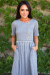 Say hello to the New Arianna! We are so confident you'll love this darling little dress as much as we do! It has some of the very best features to include a gorgeous yet comfortable heather grey material, rounded neckline, functional buttons on the bodice, half sleeves and pockets. Can you say adorable?! Grab yours today before they're all sold out!