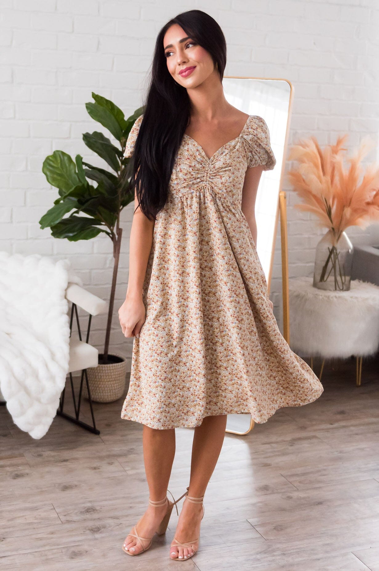 We couldn't have dreamt up a more lovely dress if we tried! The Arizona is so adorable, classy and modest all in one! Featuring short puff sleeves, sweetheart neckline with ruched detailing, pockets and a flowy mid-length skirt. Not to mention the prettiest yellow floral around! Get yours today!