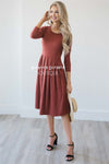You can never have too many of our soft and comfy dresses! Spice dress features 3/4 length sleeves, cute pleated wiast and side seam pockets.