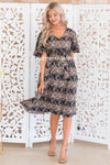 Spring and Summer are the perfect seasons to get yourself a lovely, elegant mid-Length dress! Featuring a v-neckline with functional button front, elastic waist with belt tie, and last but definitely not least absolutely gorgeous short dolman style flutter sleeves. This is a modest feminine gem, get yours today!