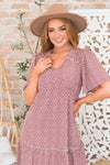 The Athena is our newest floral, this one is bound to take your breath away! We love the lovely color combo with the delicate mini floral. The soft v-neck and short flutter sleeves, babydoll fit and last but definitely not least is the feminine tiered skirt!