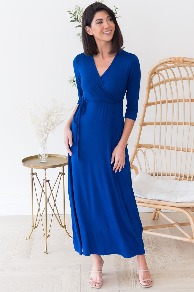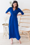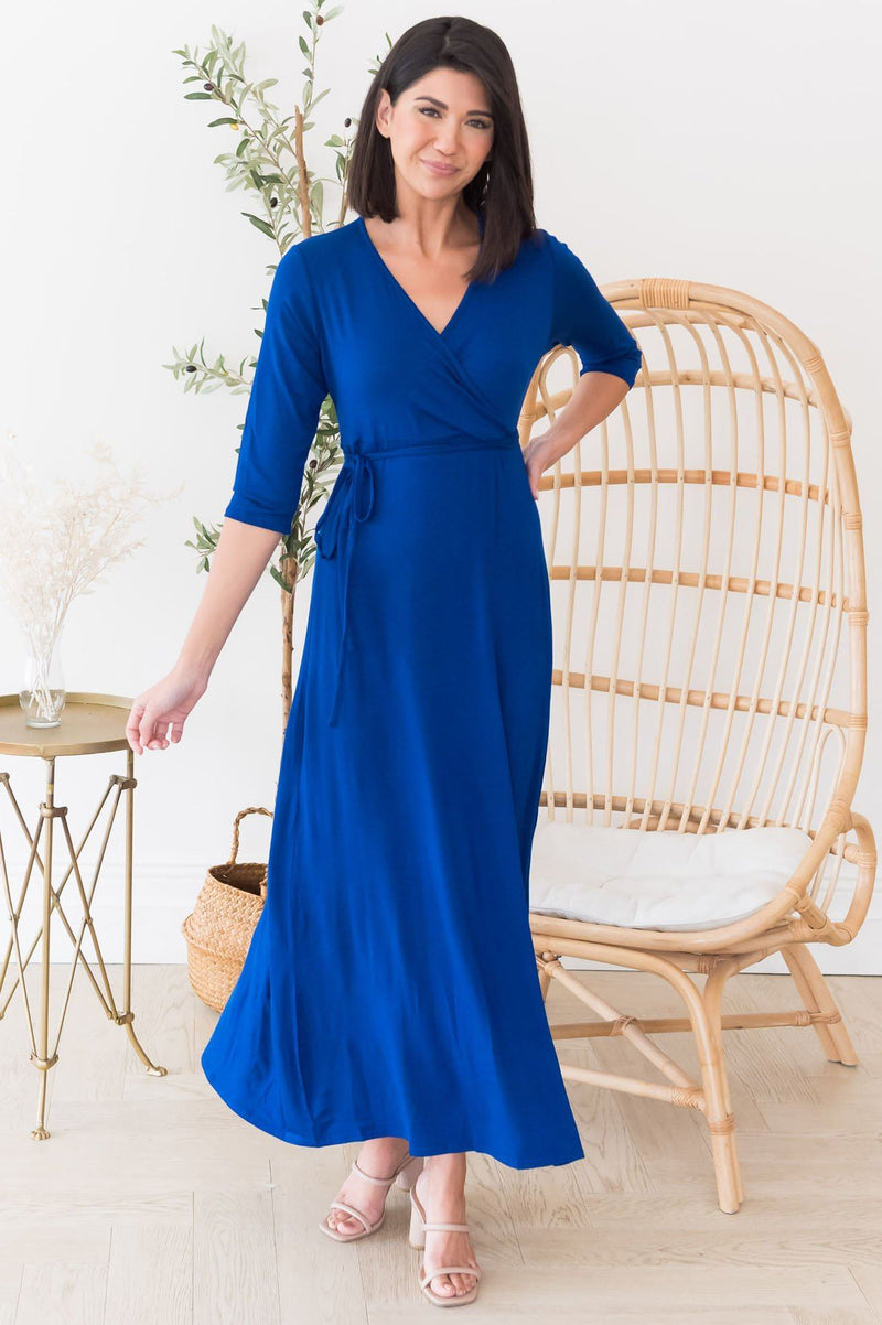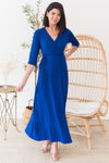 The darling Attina is the absolute perfect dress! Soft feel, rich color, feminine fit, perfect everything! Featuring a cross-body bodice, 3/4 length sleeves, belt tie waist and flowy maxi skirt length. This modest beauty is for everyone with it's soft stretch fabric and fit, get yours before they're gone!