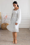 Twirling into a beautiful new day with the beautiful new Aubrey dress is! Featuring long peasant style sleeves a flattering smocked waistline and a perfect length flowy skirt! This dress is so dreamy, it's a true must have! Grab this gorgeous floral before they are gone!