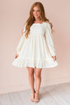 The darling petite Aunika is oh so feminine it's an absolute must have for every wardrobe! The cuffed long sleeves, stunning lace and embroidery detailing with a flowy ruffle hem skirt are the the perfect combination. Get yours today!