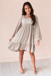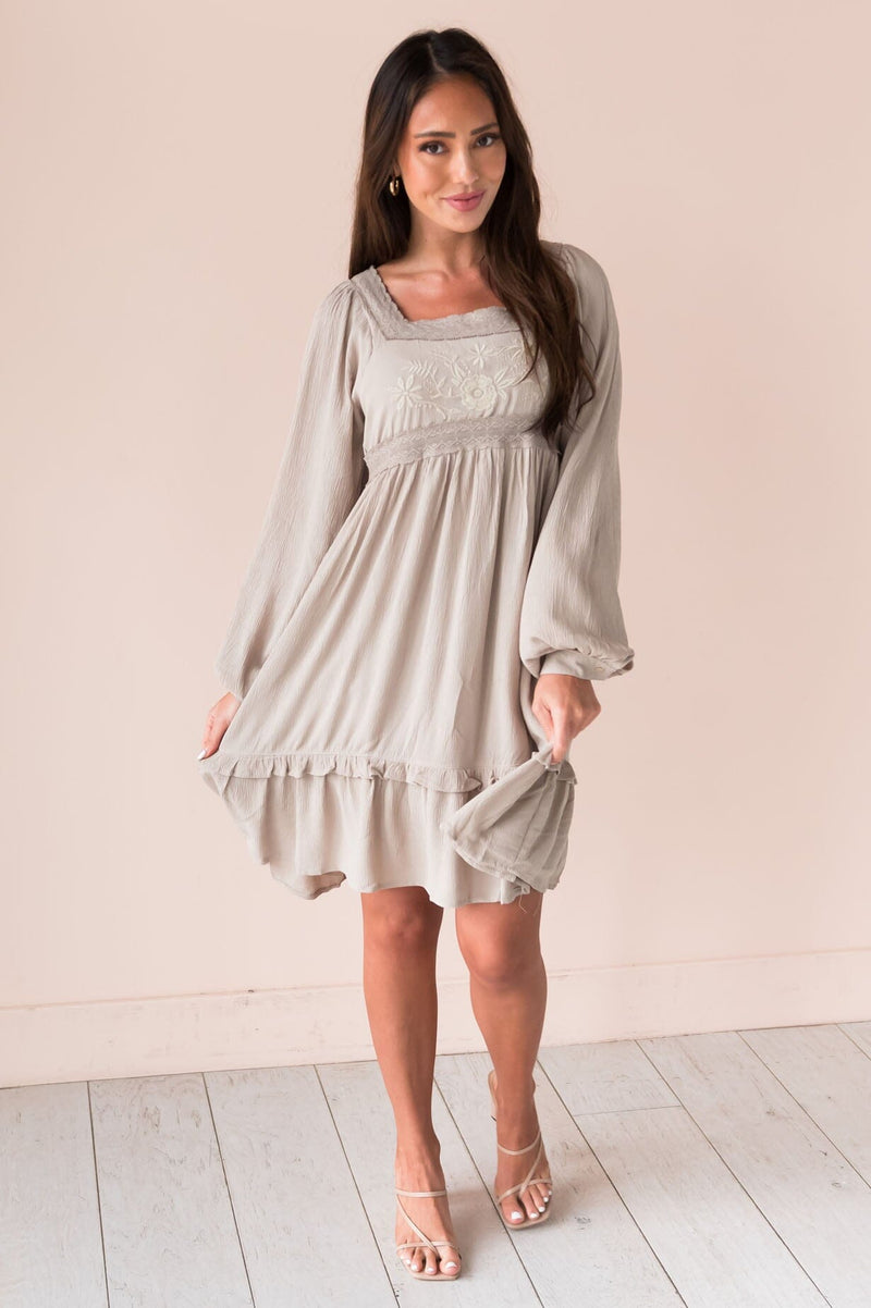 The darling petite Aunika is oh so feminine it's an absolute must have for every wardrobe! The cuffed long sleeves, stunning lace and embroidery detailing with a flowy ruffle hem skirt are the the perfect combination. Get yours today!