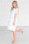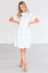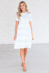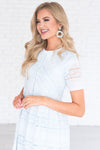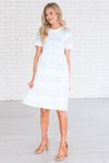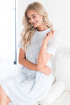 Spring is right around the corner and the Auranna is here to help you welcome in the new season in style! Featuring the most darling delicate lace detailing throughout this gorgeous dress, short unlined sleeves, zipper back closure and the perfect modest length skirt around. Get yours before these are gone!