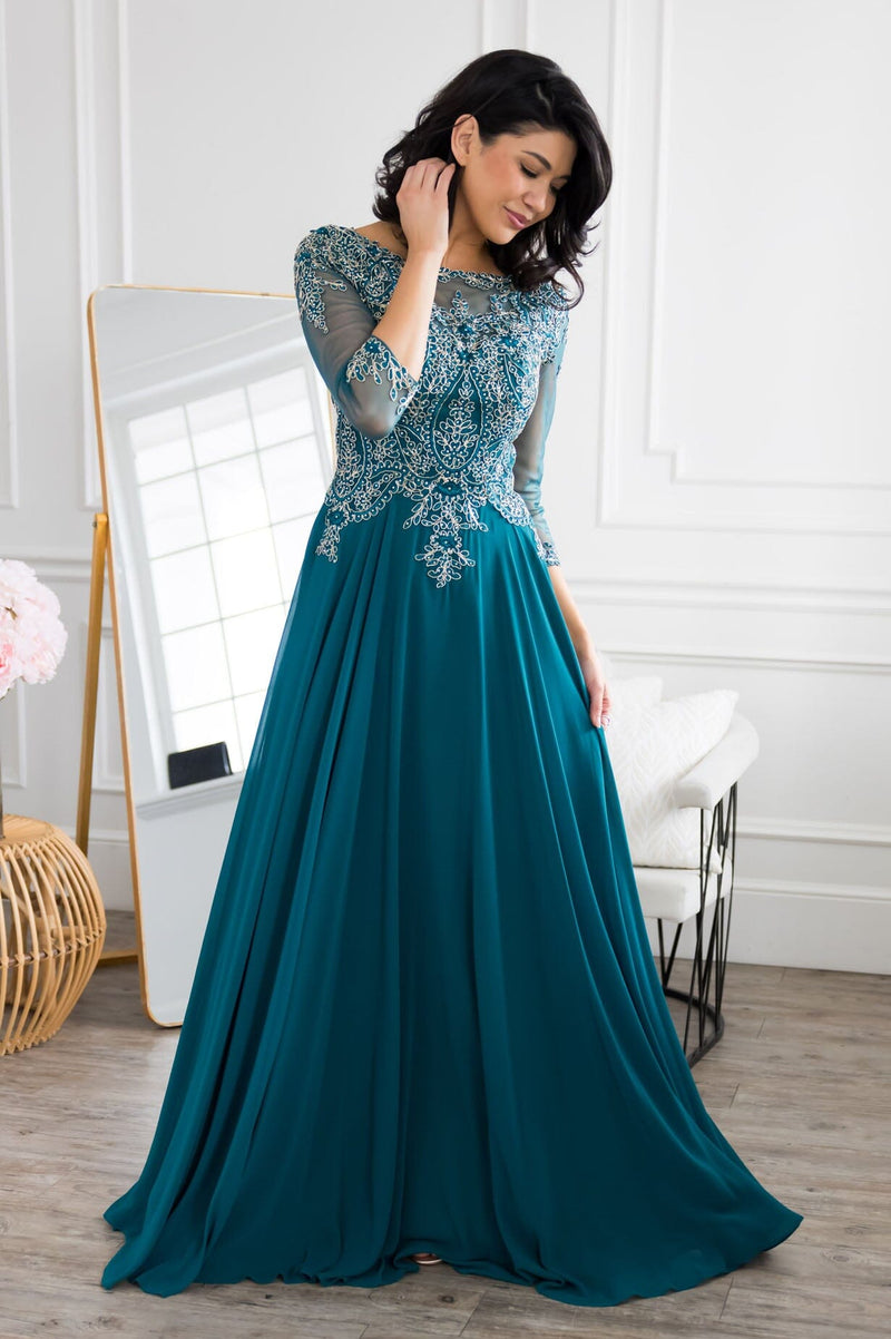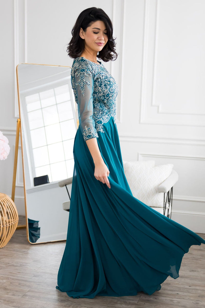 Our jaw is on the floor and we know yours will be too! Meet our new Aurora Dress. Be the star of your Prom in this stunning, modest, chiffon full length dress.
