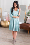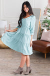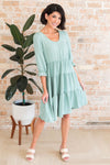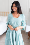The new Auston dress will be nothing but darling on you! The gorgeous sage color is a beautiful addition to any wardrobe! We are so in love with the tiered skirt detailing, 3/4 length ruffled cuff sleeves, elastic waist, and soft modest v-neckline! Grab your favorite fall cardigan and go! Trust us, you won't want to miss out on this one!!