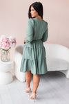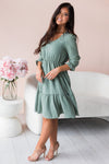 The new Auston dress will be nothing but darling on you! The gorgeous sage color is a beautiful addition to any wardrobe! We are so in love with the tiered skirt detailing, 3/4 length ruffled cuff sleeves, elastic waist, and soft modest v-neckline! Grab your favorite fall cardigan and go! Trust us, you won't want to miss out on this one!!