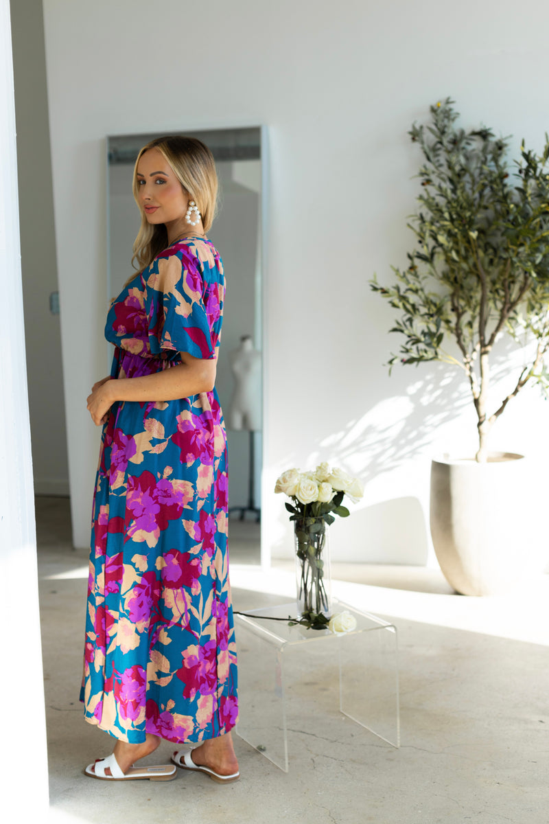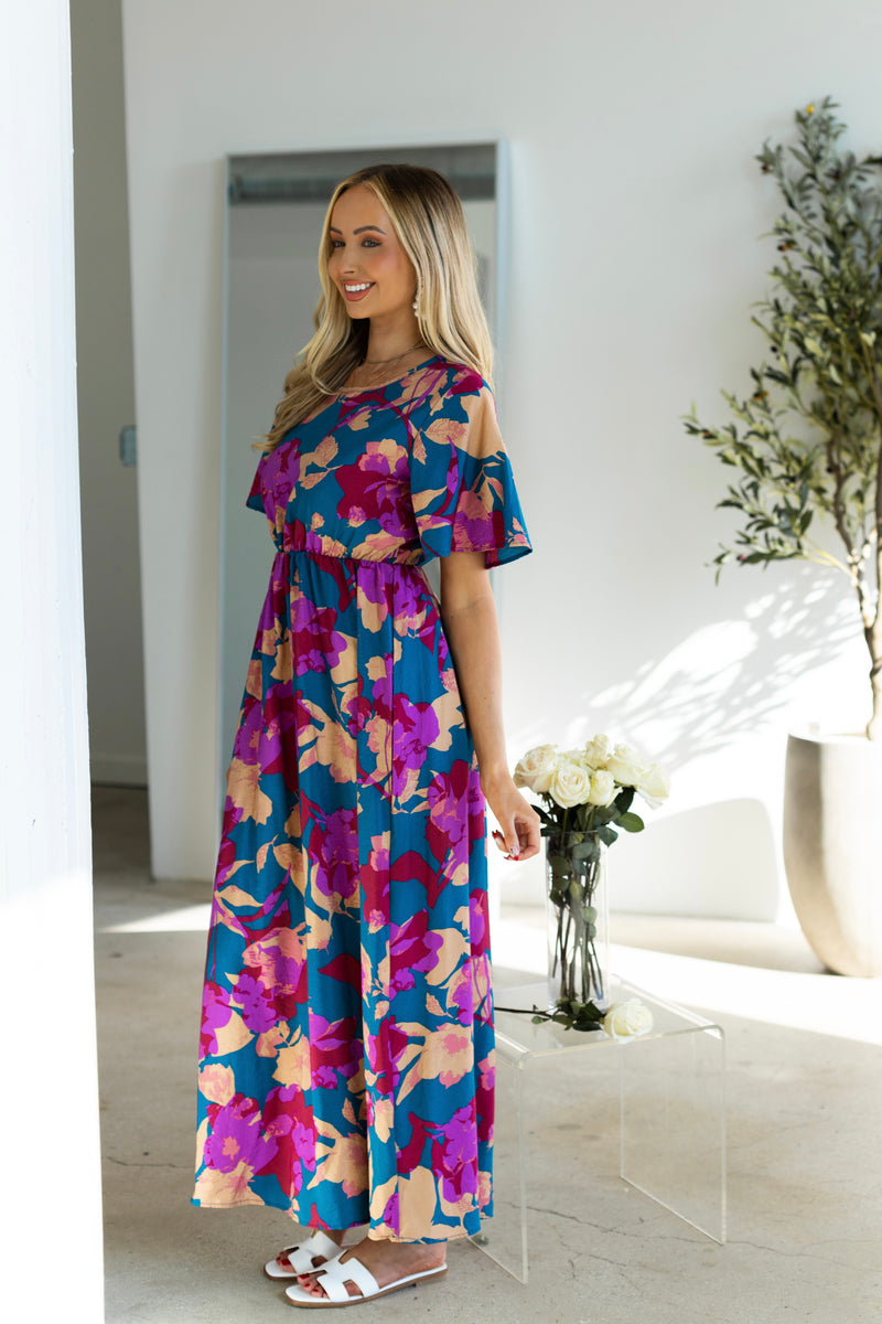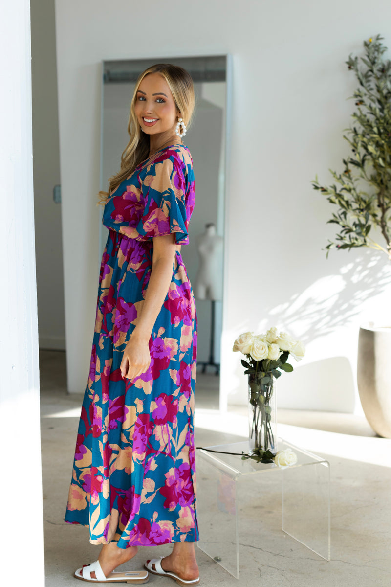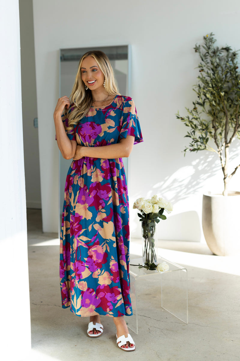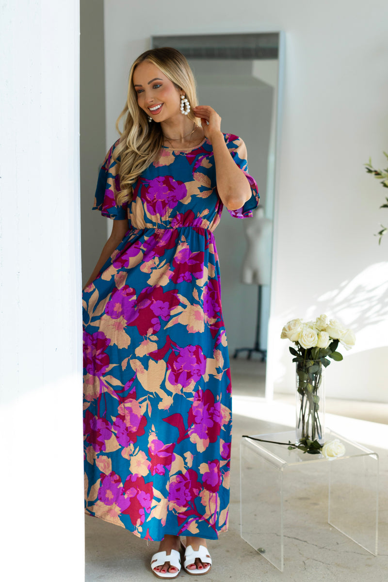 Every closet needs a super comfortable, soft, light weight, flowy, flattering an easy grab and go dress! Well, surprise, we have got the one for you! The Azriella has such a gorgeous color combination and fabulous features to include. A rounded neckline, short flutter sleeves, flattering elastic waistline and flowy maxi skirt. Get yours today before they are all gone for good!
