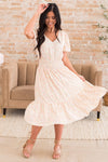 Be prepared to be amazed! This darling Beatris dress is so flattering and fun! Featuring the most gorgeous floral combo, short puff sleeves, smocked waistline with a functional button front bodice and to die for ruffled hem skirt. Get yours today!