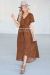 We are pleased to introduce you to the new Becka, it's so flowy and feminine, the perfect addition to everyone's closet! Featuring the ever popular cross-over bodice with a snap button closure for our nursing mama's out there. Additional features include short cuffed sleeves, elastic waist with belt tie and the loveliest high/low wrap style skirt. Just say yes to the dress and get it today!