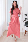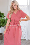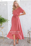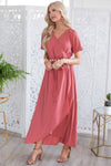 We are pleased to introduce you to the new Becka, it's so flowy and feminine, the perfect addition to everyone's closet! Featuring the ever popular cross-over bodice with a snap button closure for our nursing mama's out there. Additional features include short cuffed sleeves, elastic waist with belt tie and the loveliest high/low wrap style skirt. Just say yes to the dress and get it today!