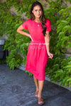 Simplicity is key when it comes to this beauty! You are not going to want to go through the summer season without this dress being apart of your wardrobe. The Belinda features a crew neckline, short sleeves, elastic waistband, pockets and the softest material you will ever own! What are you waiting for? Add this to your cart now!