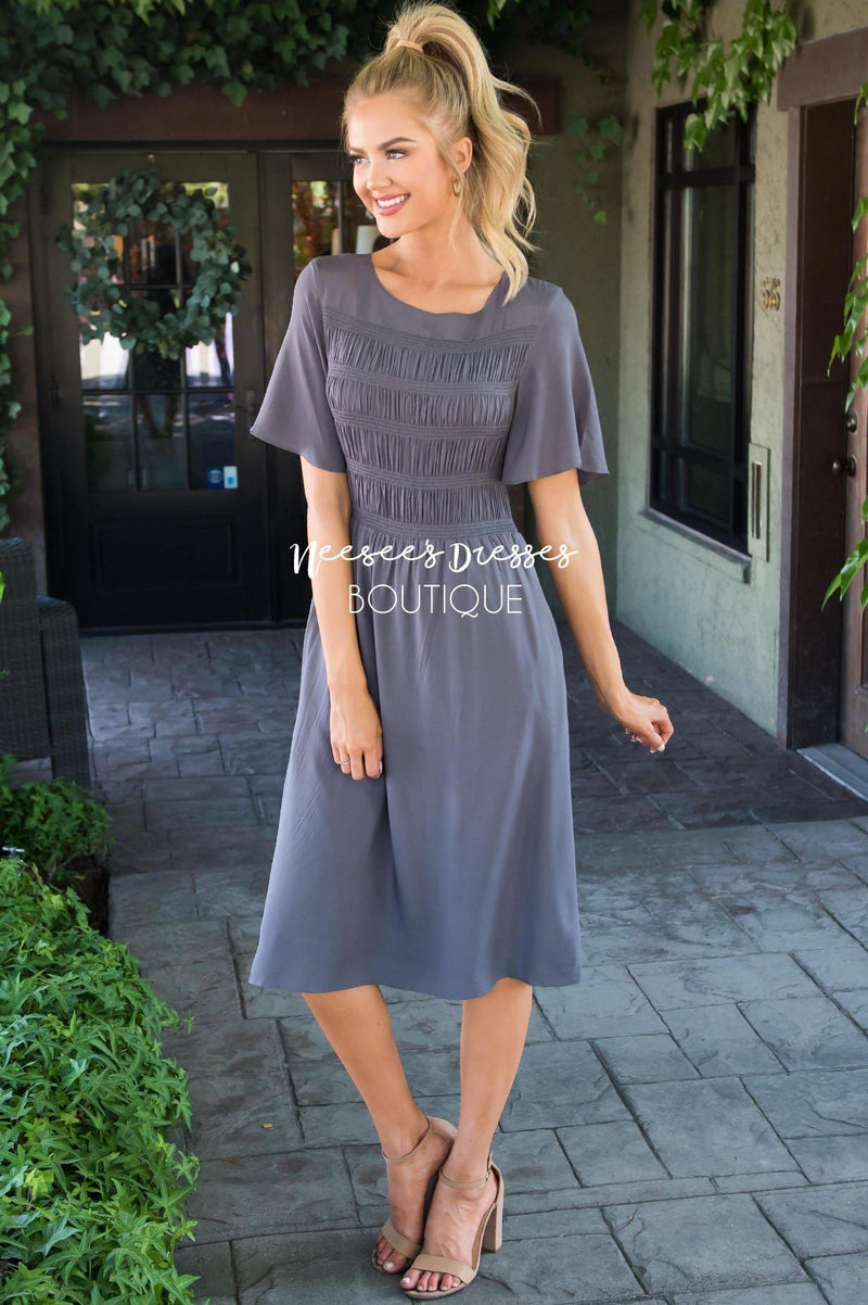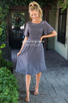 The Bellamy has arrived! This adorable dress has got us star struck! It checks everything off our list of must haves. Featuring the extremely flattering to all, shirring bodice. Mid length hemline, flutter sleeves and seamless pockets. Grab yours today!