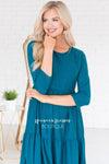 This darling Benita dress has stolen our hearts! Lovely textured material create such a classy piece! Featuring baby doll fit, 3/4 length fitted sleeves, elastic waist and a 3 tier ruffle skirt. You are going to want this added to your wardrobe, trust us!
