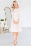 This darling Benita dress has stolen our hearts! Lovely textured material create such a classy piece! Featuring baby doll fit, 3/4 length fitted sleeves, elastic waist and a 3 tier ruffle skirt. You are going to want this added to your wardrobe, trust us!