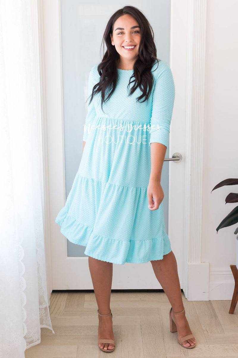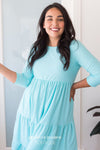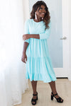This darling Benita dress has stolen our hearts! Lovely textured material create such a classy piece! Featuring baby doll fit, 3/4 length fitted sleeves, elastic waist and a 3 tier ruffle skirt. You are going to want this added to your wardrobe, trust us!