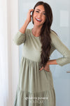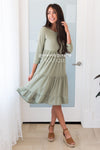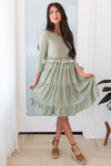 This darling Benita dress has stolen our hearts! Lovely textured material create such a classy piece! Featuring baby doll fit, 3/4 length fitted sleeves, elastic waist and a 3 tier ruffle skirt. You are going to want this added to your wardrobe, trust us!