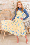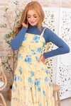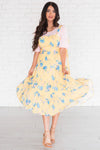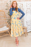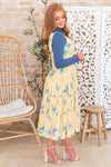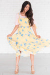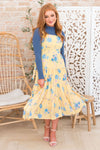 Summer is right around the corner and this dress is a must for the warm days ahead! This fabulous suspended tie top, swing tiered skirt, and yellow floral design is to die for! Darling to every last detail to the modest, but chic fit! We are obsessed with this new addition!