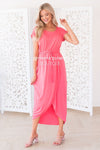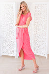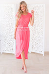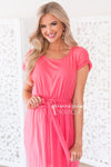 The Bianka is our new favorite modest go to dress! Perfect for any outing in the warm sunshine! Featuring short cuffed sleeves, rounded neckline, elastic waist with belt tie, and our ever popular wrap style skirt. Also, worth a mention, is how super soft and flowy this gorgeous fabric is!