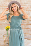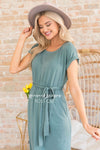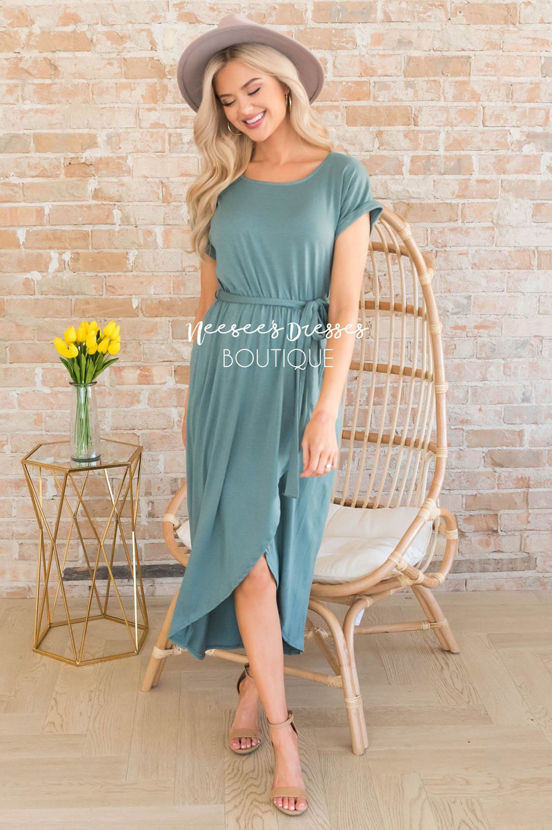 The Bianka is our new favorite modest go to dress! Perfect for any outing in the warm sunshine! Featuring short cuffed sleeves, rounded neckline, elastic waist with belt tie, and our ever popular wrap style skirt. Also, worth a mention, is how super soft and flowy this gorgeous fabric is!