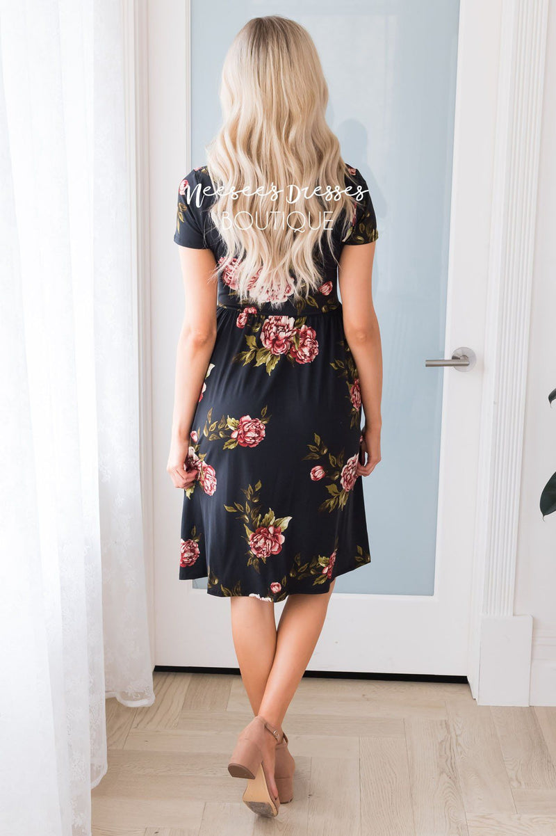The Blake dress is one you are going to want to join your wardrobe! This modest floral beauty is made out of the softest ever material! Featuring a rounded neckline, short sleeves, elastic waist, pockets and the perfect modest mid-length! Get yours today!