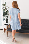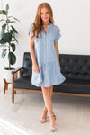 The Blue will take you from a day in the office to a day out shopping with friends with ease! This lovely modest dress is a functional wardrobe must have! Featuring a classy cuffed short sleeves with functional button bands, button front shift style and gorgeous ruffled skirt. Perfect for any day and any season!